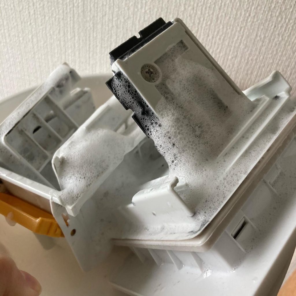 しつこいのですが、掃除前の写真を撮り忘れてしまいました。なので、洗剤の泡につけ置きしている写真からご紹介します。